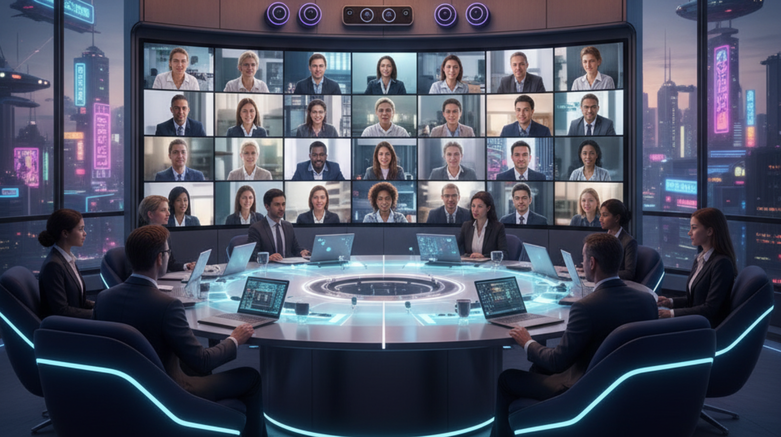 Bayangkan sebuah ruang rapat dengan 10–15 peserta, kamera PTZ otomatis mengikuti pembicara, microphone array menangkap suara dari seluruh ruangan, dan tampilan layar besar menampilkan peserta jarak jauh dengan suara jernih.